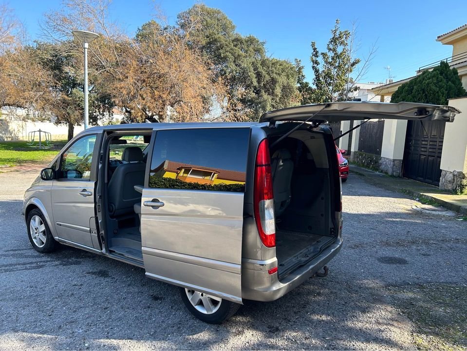 Mercedes Viano del año 2009 (TREND 2.2 CDI 150 CV con 180.000 km). Tiene transmisión Manual, es Diésel,150 CV, con libro de mantenimiento e historial completo.Único propietario. Motor muy duro y fiable con mucha fuerza. Dispone de aire acondicionado en parte delantera y trasera, velocidad crucero, eleva lunas eléctricas, cierre centralizado con mando, dos llaves, bola de remolque, radio CD original, mesa en los asientos traseros, llantas, espejos eléctricos, sensor de luces, sensores de aparcamiento, ITV pasada recientemente